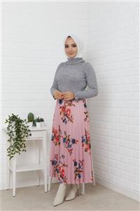 ALLMİRA FASHION Kadın Pudra Çiçekli Pliseli Etek