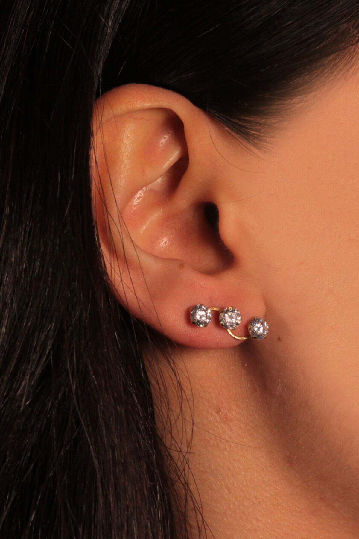 Adil İdil Kuyumculuk Üçlü Taşlı Top Küpe
