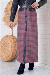 Afilva Kadın Deri Detaylı Düğmeli Gül Kurusu Etek