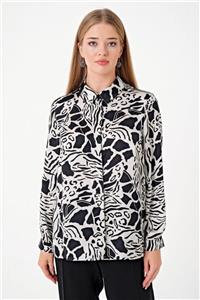 Mizalle Kadın Ekru Yaprak Desenli Bluz 18KGMZL1012008