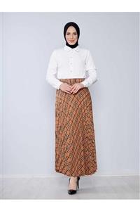 BURCU TESETTÜR Kemer Detaylı Ekoseli Kloş Etek