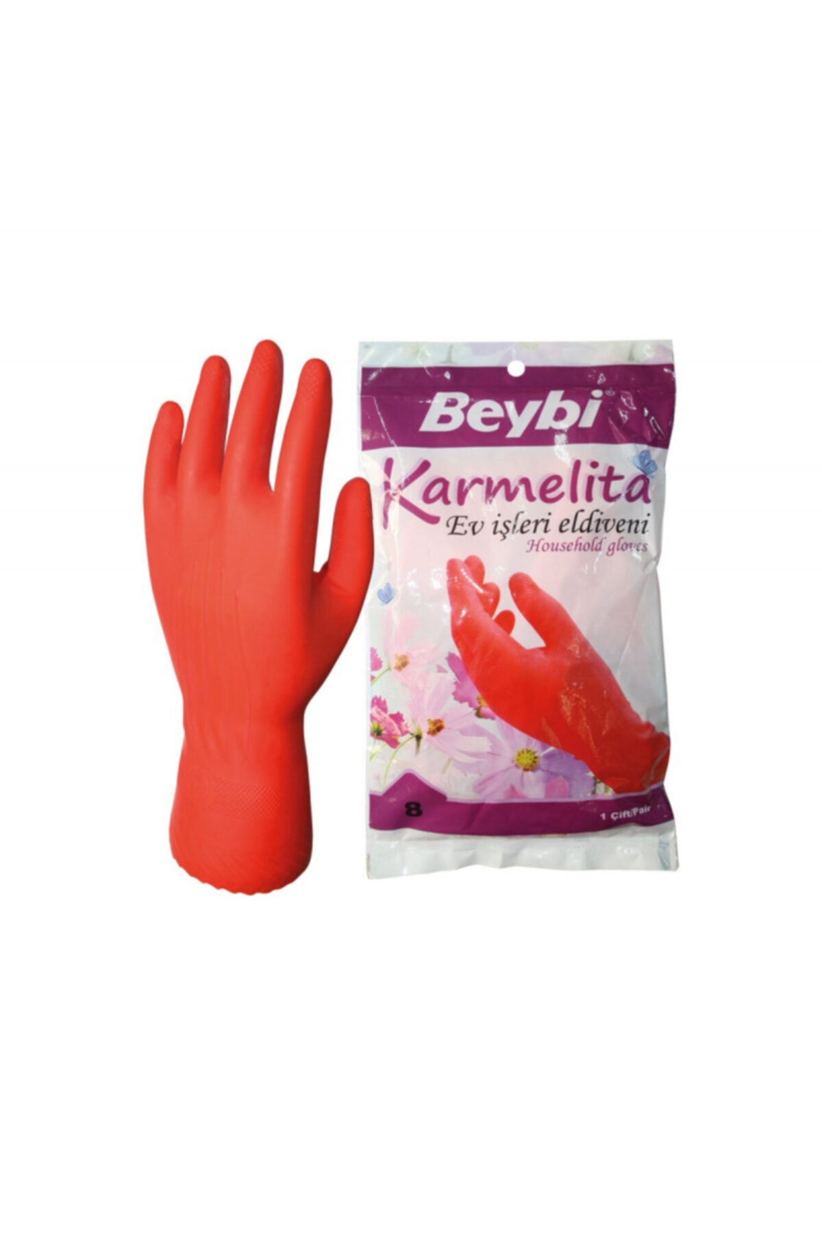 Beybi Karmelita 8 Numara 25li Paket Bulaşık Eldiveni Gıdaya Uygundur Kaymayı Önleyici Pütürlü