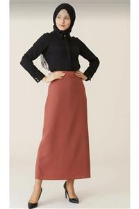 Butik Görsel Kadın Taba Renk Kapalı Yırtmaç Tesettür Etek