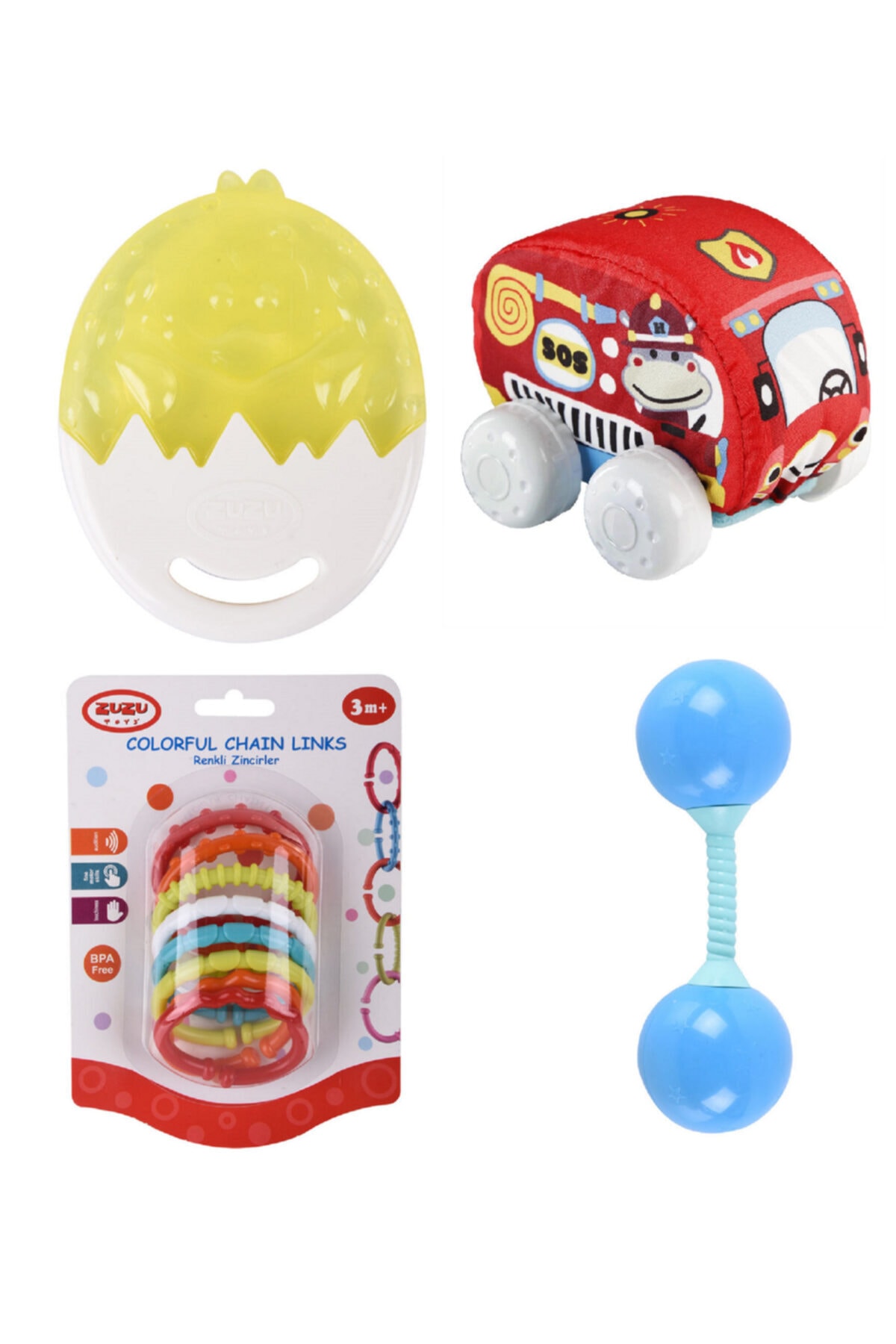 ByCaretta Yumurta Sulu Diş Kaşıyıcı + Sevimli Pelüş Araba + Renkli Zincirler + Dambıl Çıngırak