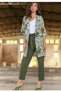 Koton Kadın Sarı V Yaka 3/4 Kol Desenli Kimono 9YAK52924UW