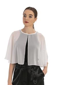 DISENTIS MODEST Yuvarlak Yaka Üstten Düğmeli Şifon Beyaz Pelerin