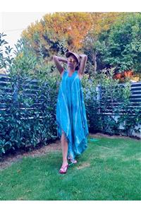 DRESS4EVENT Kadın Yeşil Batik Desen Plaj Elbisesi