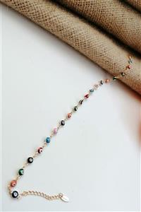 Söğütlü Silver Gümüş Altın Yaldızlı Cam Göz Nazar Gümüş Halhal