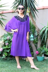 FAZZA FABRİKA Mor Yaka Detay Plaj Elbisesi