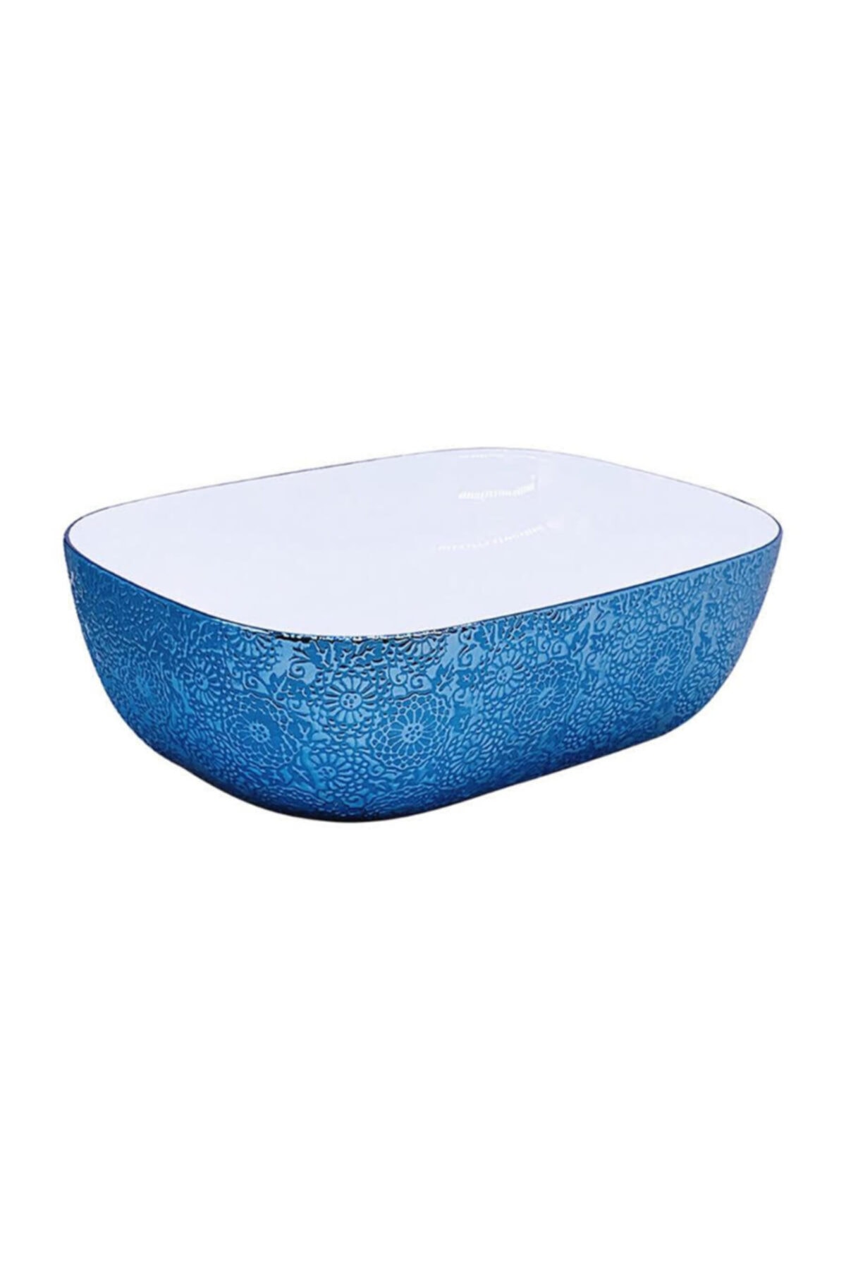 FKN Mavi Çiçek Desenli Dikdörtgen Çanak Lavabo