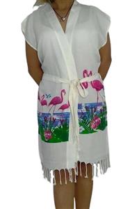 Güneybatı Home Kadın Beyaz Plaj Elbisesi Kimono Flamingo