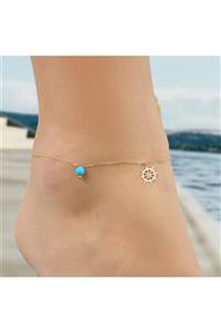 Glorria Altın Firuze Taşlı Dümen Halhal