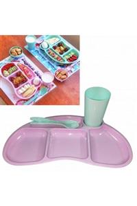 Go İthalat Tabldot Çocuk Yemek Plastik Tabldot Set 4 Parça - Bölmeli Bardak Çatal Kaşıklı