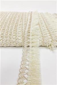 Hobigram Krem Örgü Püsküllü Saçak Şerit