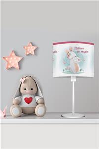Else Halı Pembe Beyaz Çizgili Tilkili Balerin Desenli Çocuk Odası Abajur