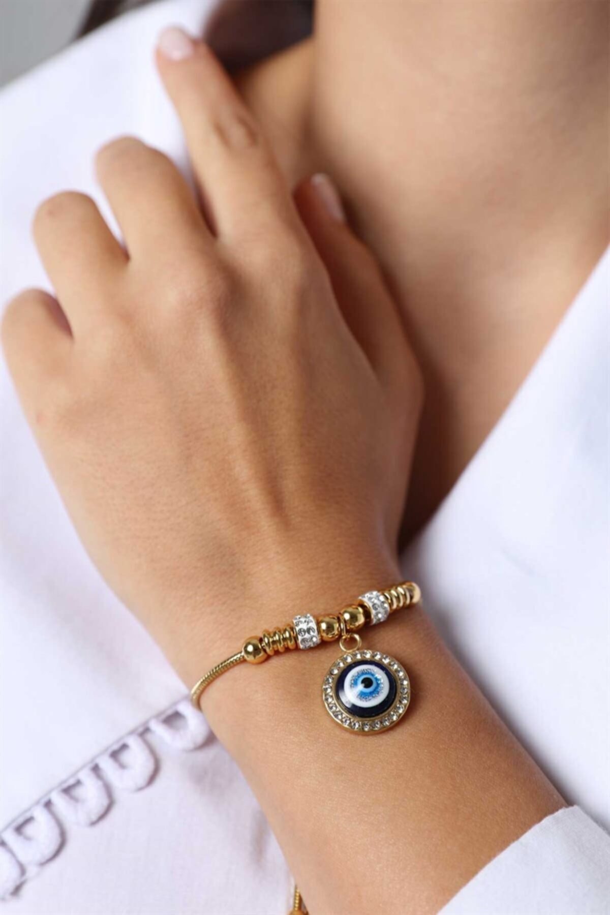 Jewel P. Model Asansörlü Nazar Boncuğu Gold Altın Kaplama Bileklik