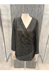 Cool & Sexy Kadın Siyah Çapraz Yaka Yarım Balıkçı Bluz B1404