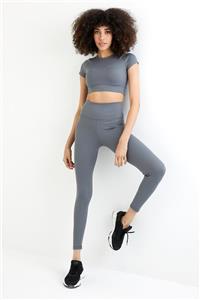 MRS.MODA Kadın Antrasit Yüksek Bel Fitilli Spor Takım 2'li