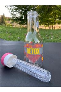 Mandalinna Cam Detox Matara Sürahi Desenli Kapaklı