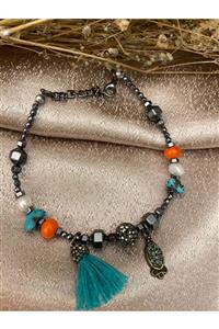 Glorria Altın Firuze Taşlı Çiçek Halhal
