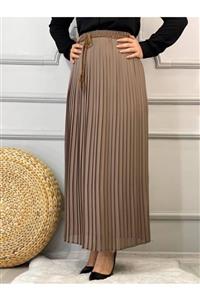 Moda Asrın Kadın Vizon Krep Piliseli Etek