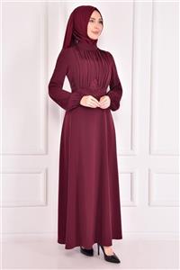 ModaMerve Güpür Detay Elbise Bordo Asm2387