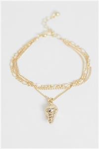 Gumush Gurmet Zincirli Kare Zirkon Taşlı Gold Halhal