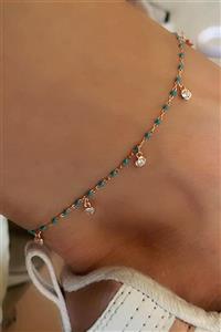OSESHOP Zinciri Mine Zirkon Taş Detaylı Gümüş Rose Trend Halhal