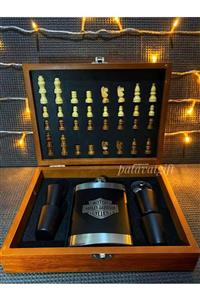 Patavat Satrançlı Matara Seti Ahşap Kutu-ahşap Satranç Taşları