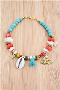Pelin Aksesuar Turkuaz Ve Mercan Taşlı Tasarım Halhal