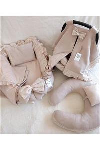 Raduga Collection Babynest 7 Parçalı Dantelli Ve Fırfırlı Set Bej Rengi