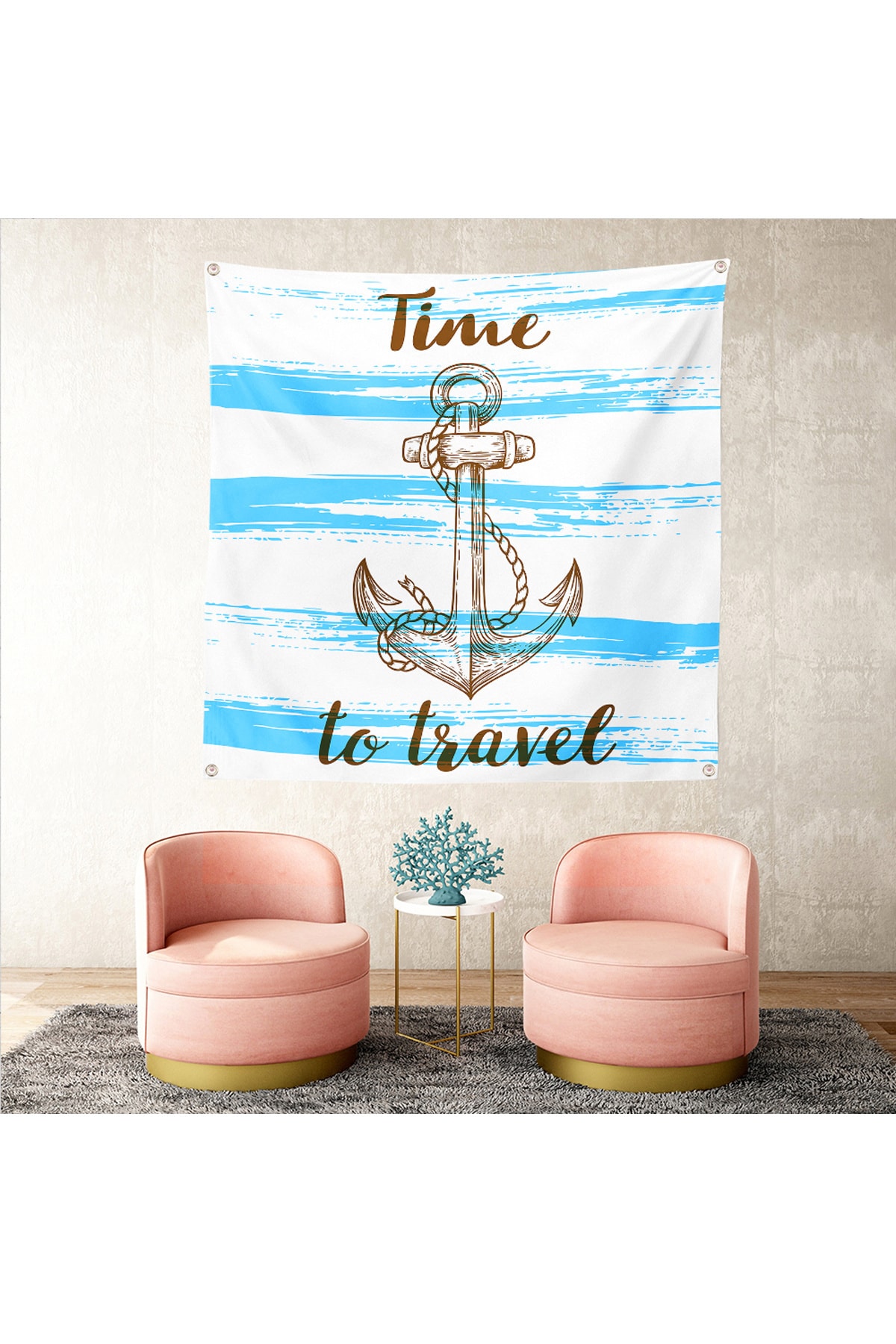 Realhomes Time To Travel Denizci Desenli Modern Tapestry Duvar Halısı