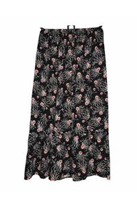 SAVCIGİYİM Siyah Zemin Desenli Fırfırlı Düğmeli Lastikli Etek