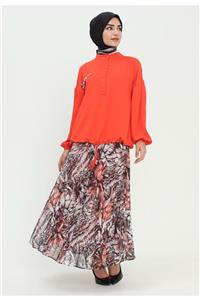 Setrms Oranj Etnik Desenli Pliseli Etek 2126065