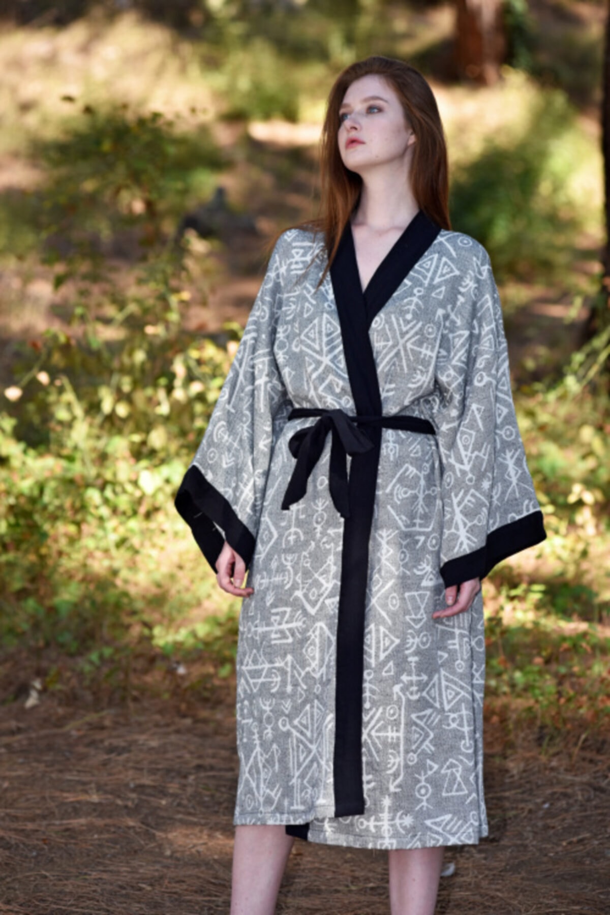 Koton Kadın Siyah Klasik Yaka 3/4 Kol Beli Bağlamalı Çizgili Kimono 9YAK58187CW