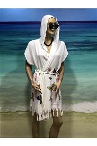 TARZ PEŞTEMAL Kadın Kelebek Desenli Plaj Elbisesi