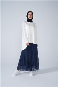 Thesetthur Kadın Mavi Şifon Astarlı Piliseli Etek