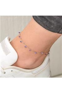 Tmt Silver Gümüş Rose Bronz Mor Taşlı Halhal