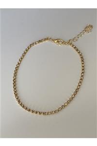 Gumush Gurmet Zincirli Kare Zirkon Taşlı Gold Halhal