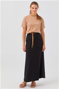 apsen Kadın Siyah Bağlama Ve Çıtçıt Detaylı Tesettür Etek 2047/95