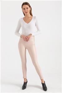 Olalook Kadın Haki İçi Polarlı Yüksek Bel Deri Görünümlü Tayt TYT-19000040