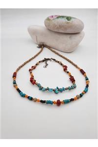 takitokaciniz Kadın Doğal Turkuaz Ve Doğal Mercandan Kolye Halhal Set